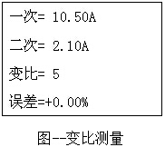在主画面下,按[2]键进入此画面。在此功能,可以显示出一次、二次电流值及变比值,并可显示变比误差。